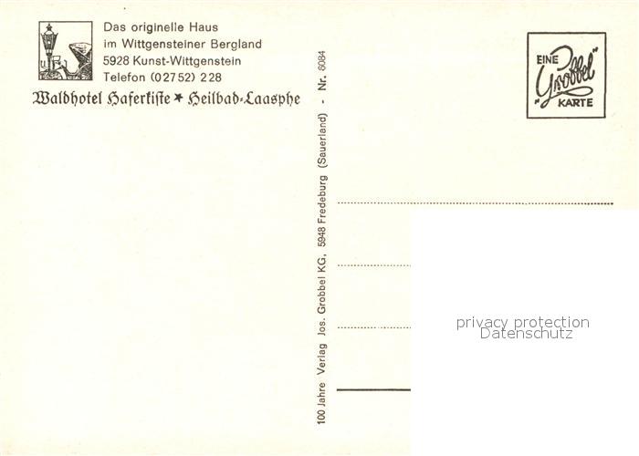 73124375 Kunst-Wittgenstein Waldhotel Haferkiste Heilbad Laasphe postalisch nicht gelaufen Erhaltung siehe scans [KathaD81] KatCode: 11110005970028