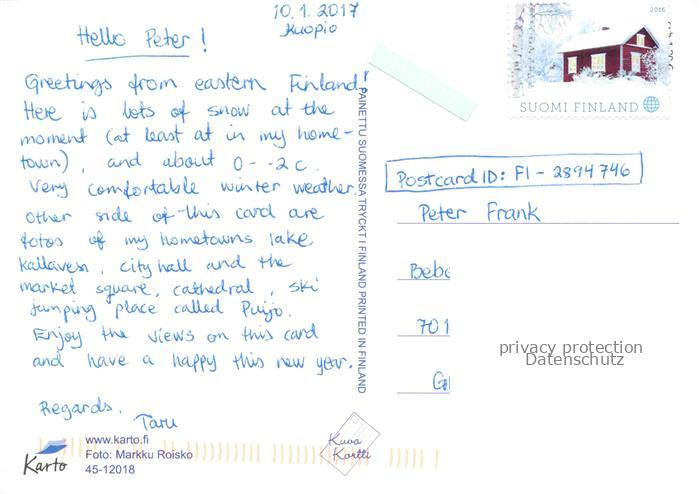 74005812 old postcard Kuopio Suomi Winterpanorama postalisch gelaufen Erhaltung siehe scans [FriedD77] KatCode: 11160