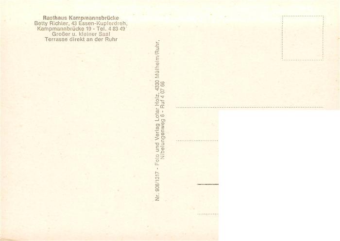 73878663 Kupferdreh Rasthaus Kampmannsbruecke Restaurant Terrasse postalisch nicht gelaufen Erhaltung siehe scans [FriedD77] KatCode: 11110005113000