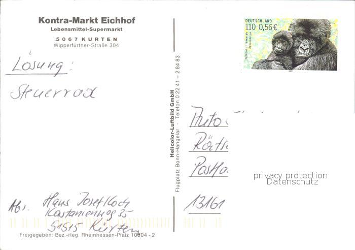 72495812 Kurten Kontra Markt Eichhof Fliegeraufnahme postalisch nicht gelaufen Erhaltung siehe scans KatCode: 14140460000000