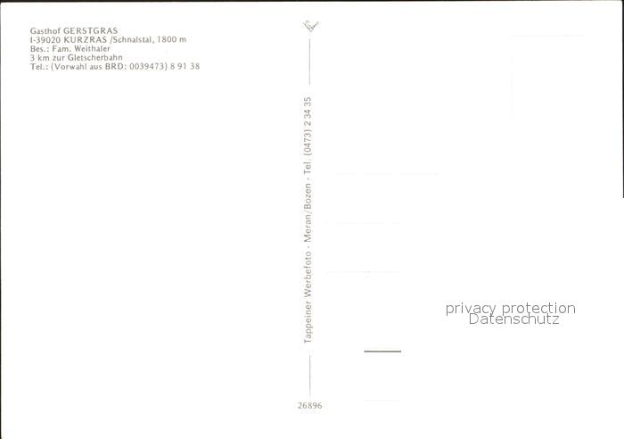 Kurzras Schnals Gasthof Gerstgras Seilbahn See postalisch nicht gelaufen