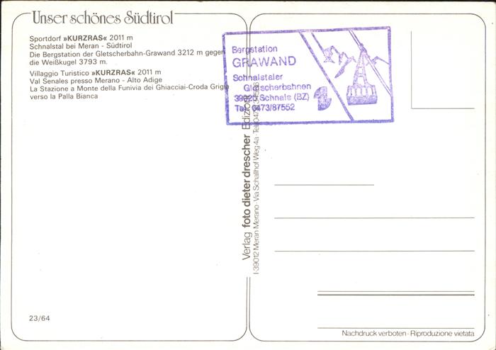 Kurzras Schnals Schnalstaler Gletscherbahn Bergstation Grawand Weisskugel Restaurant Wintersportplatz oetztaler Alpen postalisch nicht gelaufen Erhaltung siehe scans