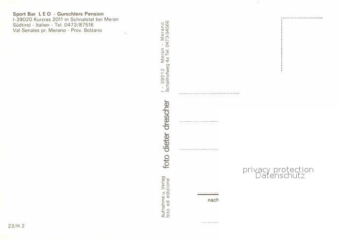 Kurzras Schnals Sport Bar Leo Gurschlers Pension Winter postalisch nicht gelaufen Erhaltung siehe scans [KathaD79]