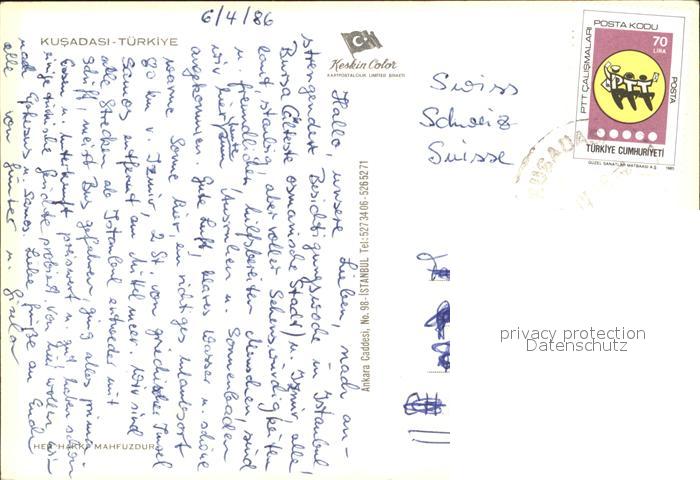 old postcard Kusadasi Oceandampfer Schiff Hafen Segelboot postalisch gelaufen Erhaltung siehe scans