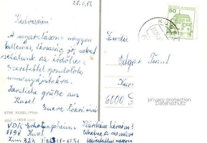 73247919 alte Postkarte Kusel Burgruine Lichtenberg Rathaus Rosengarten Panorama postalisch gelaufen Erhaltung siehe scans [KathaD81] KatCode: 11110007336055