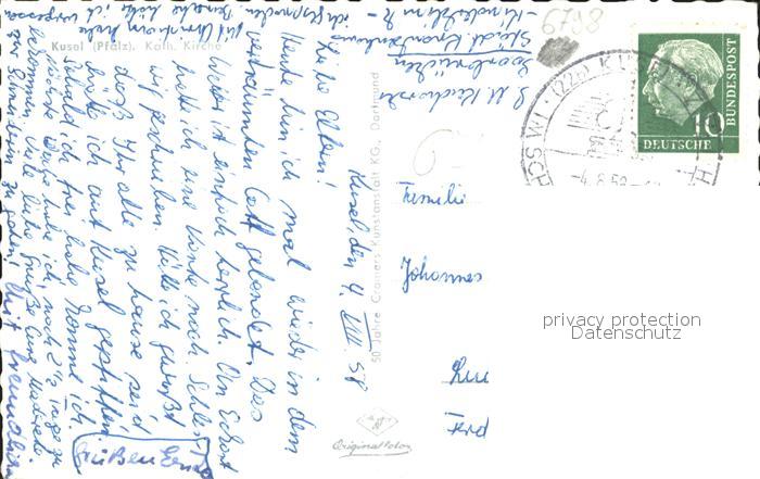 72094332 alte Postkarte Kusel Katholische Kirche postalisch gelaufen Erhaltung siehe scans KatCode: 11110007336055