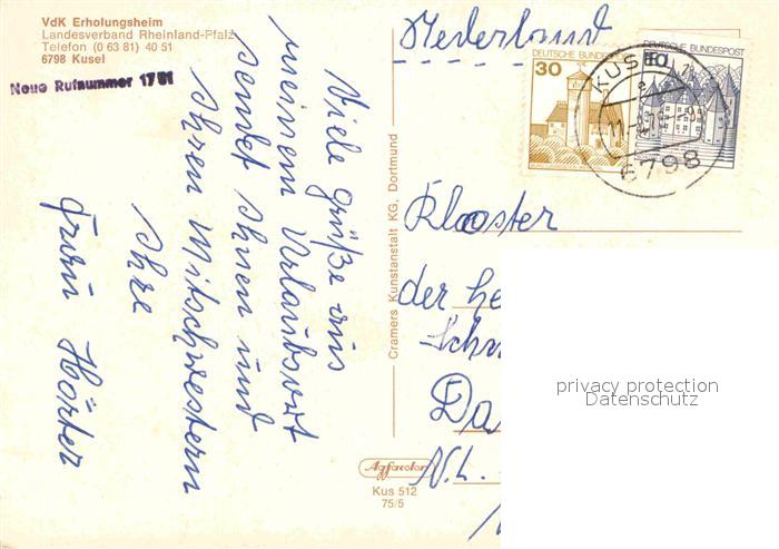 72863535 alte Postkarte Kusel Panorama mit VdK Erholungsheim postalisch gelaufen Erhaltung siehe scans [FriedD77] KatCode: 11110007336055