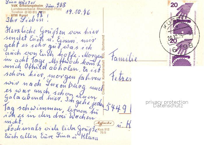72987759 alte Postkarte Kusel VdK Erholungsheim postalisch gelaufen Erhaltung siehe scans [LiesaD40] KatCode: 11110007336055