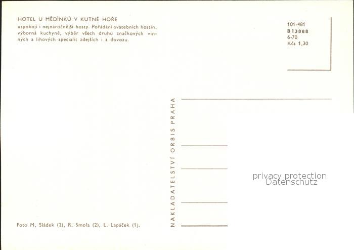 Kutna Hora Hotel U Medinku postalisch nicht gelaufen Erhaltung siehe scans