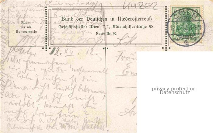 74084285 alte Postkarte KUTZER Ernst (1880-1965) Kuenstlerkarte Nr. 92 Bund der Deutsche Niederoesterreich postalisch gelaufen Erhaltung siehe scans [IrynaD87] KatCode: 22240000003200