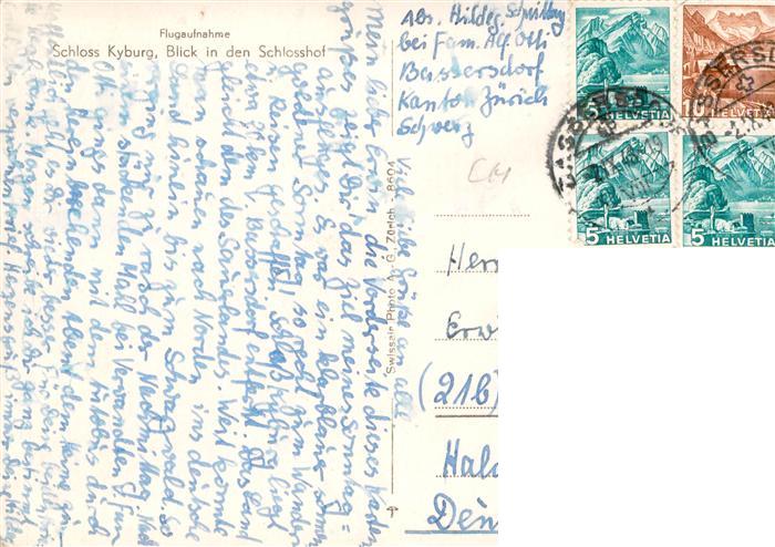 13946046 alte Postkarte Kyburg ZH Schloss Blick in den Schlosshof postalisch gelaufen Fliegeraufnahme Erhaltung siehe scans [FriedD77] KatCode: 11470260900408