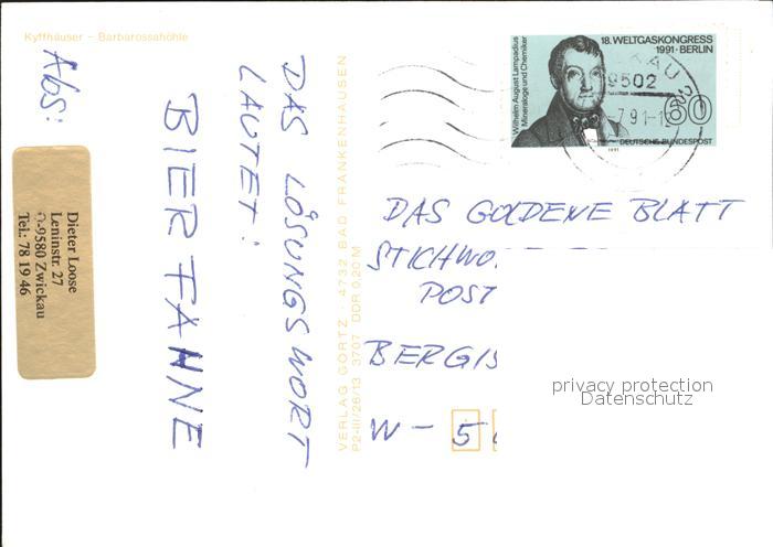 72379168 alte Postkarte Kyffhaeuser Barbarossahoehle postalisch gelaufen Erhaltung siehe scans KatCode: 11110016065003