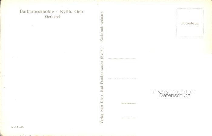 71934967 Kyffhaeuser Barbarossahoehle Gerberei postalisch nicht gelaufen Erhaltung siehe scans KatCode: 11110016065003