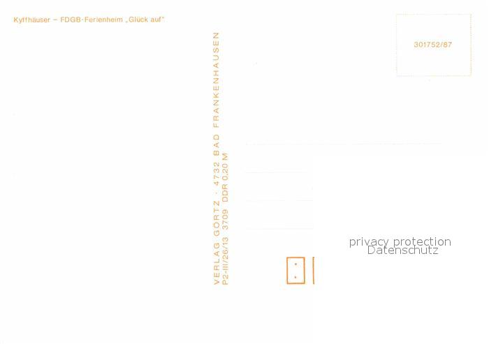 72720711 Kyffhaeuser FDGB Ferienheim Glueck auf postalisch nicht gelaufen Erhaltung siehe scans [LiesaD40] KatCode: 11110016065003