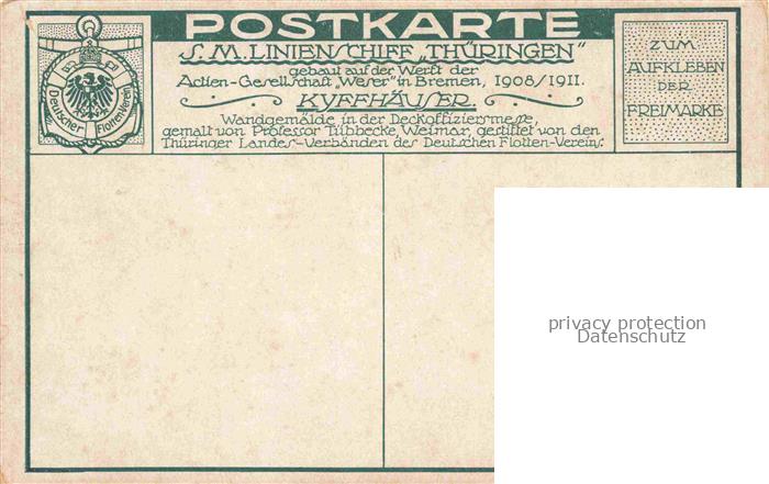 74037360 Kyffhaeuser Panorama Blick zum Kyffhaeuser Denkmal Wandgemaelde in Offiziersmesse auf S.M. Linienschiff Thueringen Kuenstlerkarte postalisch nicht gelaufen Erhaltung siehe scans [FriedD77] KatCode: 11110016065003