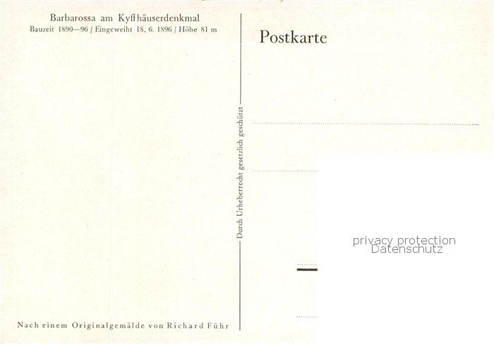 73771691 Kyffhaeuserdenkmal Barbarossa am Kyffhaeuserdenkmal Kuenstlerkarte R. Fuehr postalisch nicht gelaufen Erhaltung siehe scans [LiesaD40] KatCode: 11110016065003