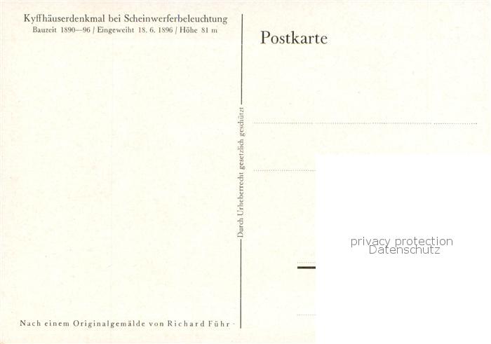 73771690 Kyffhaeuserdenkmal Denkmal bei Scheinwerferbeleuchtung Kuenstlerkarte R. Fuehr postalisch nicht gelaufen Erhaltung siehe scans [LiesaD40] KatCode: 11110016065003