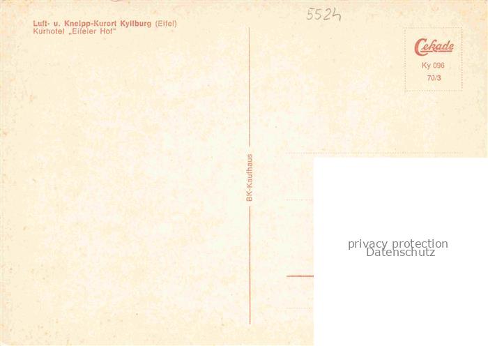 74055112 Kyllburg Eifelkreis Rheinland-Pfalz Kurhotel Eifeler Hof postalisch nicht gelaufen Erhaltung siehe scans [WerneD78] KatCode: 11110007232070