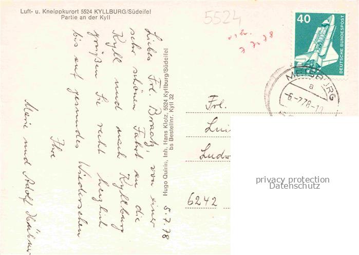 74055108 alte Postkarte Kyllburg Eifelkreis Rheinland-Pfalz Partie an der Kyll postalisch gelaufen Erhaltung siehe scans [WerneD78] KatCode: 11110007232070