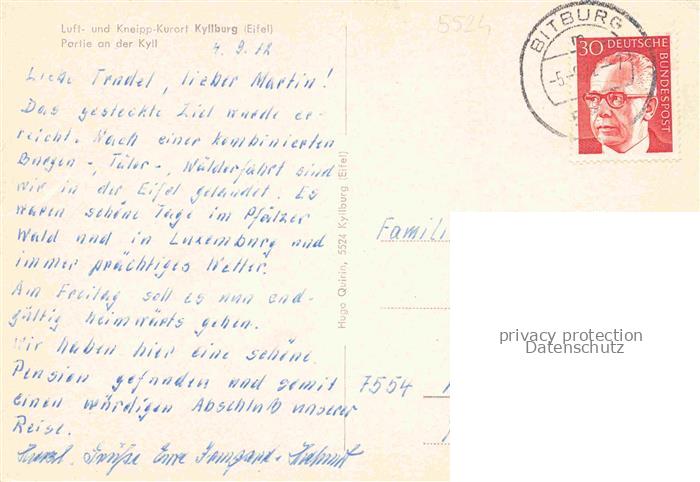 74055161 alte Postkarte Kyllburg Eifelkreis Rheinland-Pfalz Partie an der Kyll postalisch gelaufen Erhaltung siehe scans [WerneD78] KatCode: 11110007232070
