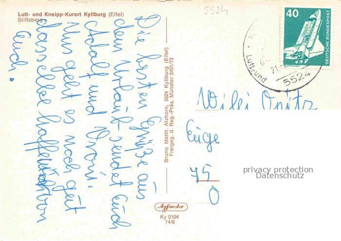 74055127 alte Postkarte Kyllburg Eifelkreis Rheinland-Pfalz Stiftsberg postalisch gelaufen Fliegeraufnahme Erhaltung siehe scans [WerneD78] KatCode: 11110007232070