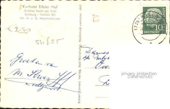 72431399 alte Postkarte Kyllburg Rheinland-Pfalz Kurhotel Eifeler Hof Panorama postalisch gelaufen Erhaltung siehe scans KatCode: 11110007232070
