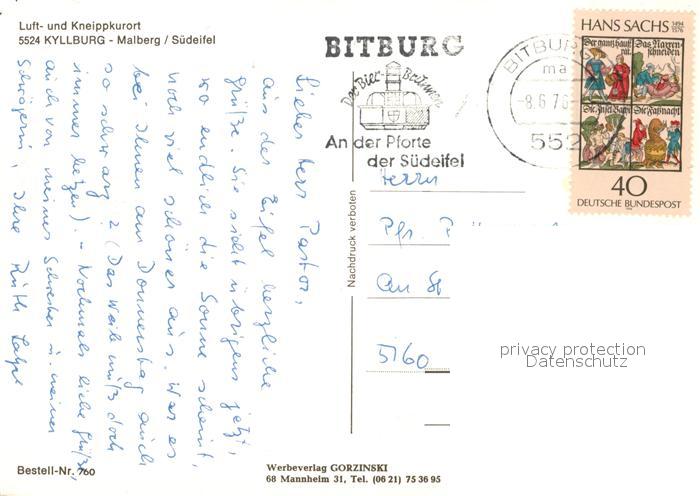 73181648 alte Postkarte Kyllburg Rheinland-Pfalz Stadtansichten Panoramen postalisch gelaufen Erhaltung siehe scans [KathaD81] KatCode: 11110007232070
