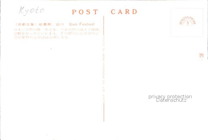 Kyoto Gion Festival postalisch nicht gelaufen Erhaltung siehe scans
