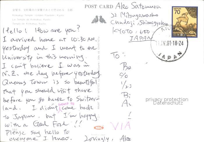 old postcard Kyoto Tempel Kinkakuij postalisch gelaufen Erhaltung siehe scans