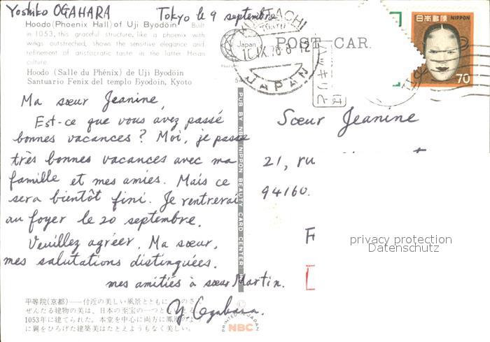 alte Postkarte Kyoto Tempel Pagode postalisch gelaufen Erhaltung siehe scans