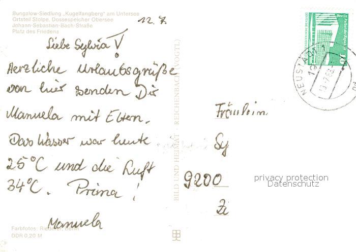 73012039 Kyritz Brandenburg Bungalow Siedlung Kugelfangberg Dossespeicher Obersee Joh Seb Bach Strasse PdF postalisch nicht gelaufen Erhaltung siehe scans [WerneD78] KatCode: 11110012068264