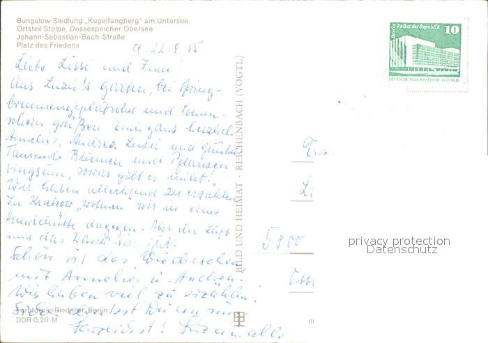 72139711 alte Postkarte Kyritz Brandenburg Bungalow Siedlung Stolpe Dossespeicher Obersee Johann Sebastian Bach Strasse postalisch gelaufen Erhaltung siehe scans KatCode: 11110012068264