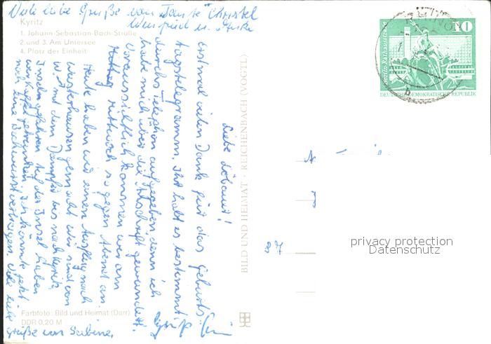 72337171 alte Postkarte Kyritz Brandenburg Johann Sebastian Bach Strasse Untersee Platz der Einheit postalisch gelaufen Erhaltung siehe scans KatCode: 11110012068264