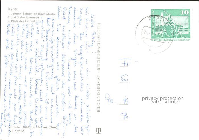 72383247 alte Postkarte Kyritz Brandenburg Johann Sebastian Bach Strasse Untersee Platz der Einheit postalisch gelaufen Erhaltung siehe scans KatCode: 11110012068264
