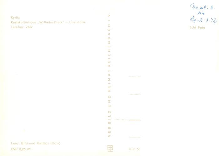 73876674 Kyritz Brandenburg Kreiskulturhaus Wilhelm Pieck Gaststaette Bar postalisch nicht gelaufen Erhaltung siehe scans [WerneD78] KatCode: 11110012068264