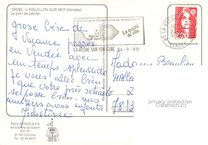 13536467 carte postale L Aiguillon-sur-Mer Port de pêche bateaux postalisch gelaufen Erhaltung siehe scans [FriedD77] KatCode: 11170085185001