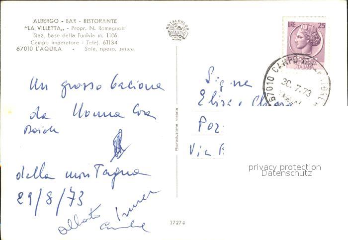 old postcard L Aquila Albergo Bar Restaurant La Viletta postalisch gelaufen Erhaltung siehe scans