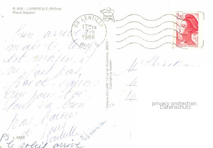 12928889 carte postale L Arbresle Place Sapeon postalisch gelaufen Erhaltung siehe scans [FriedD77] KatCode: 11170069169010