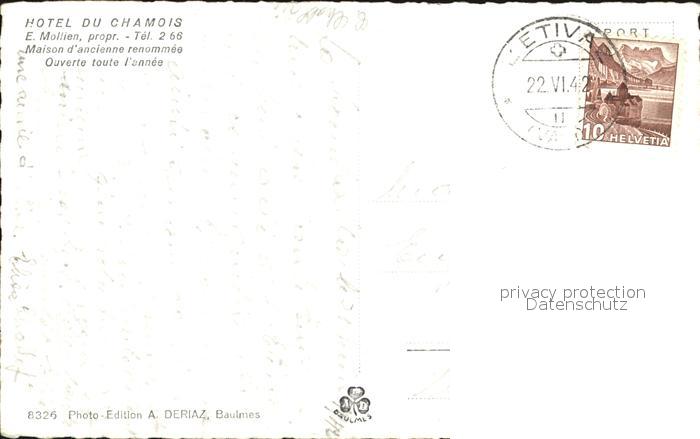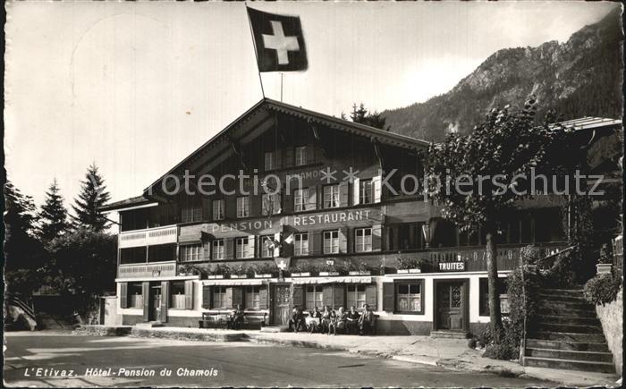 12467926 alte Postkarte L Etivaz Hotel Pension du Chamois postalisch gelaufen Erhaltung siehe scans KatCode: 11470240835812