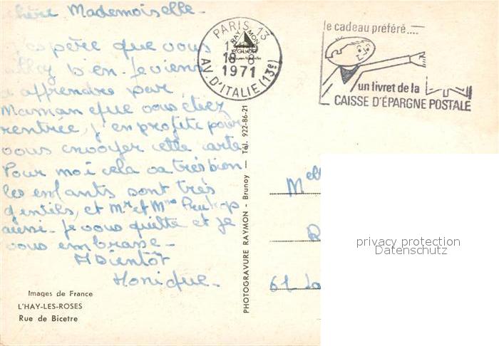 12999581 carte postale L Hay-les-Roses Rue de Bicetre postalisch gelaufen Erhaltung siehe scans [WerneD78] KatCode: 11170094394038