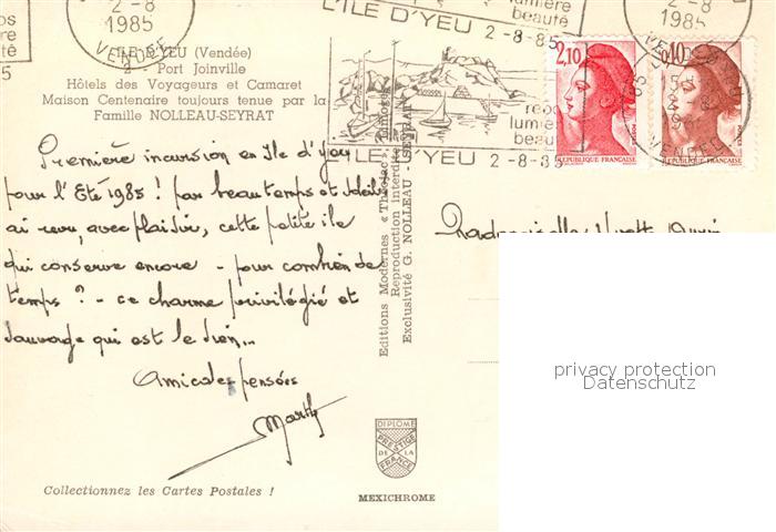 carte postale L Ile-d Yeu Port Joinville postalisch gelaufen Erhaltung siehe scans [WerneD78]