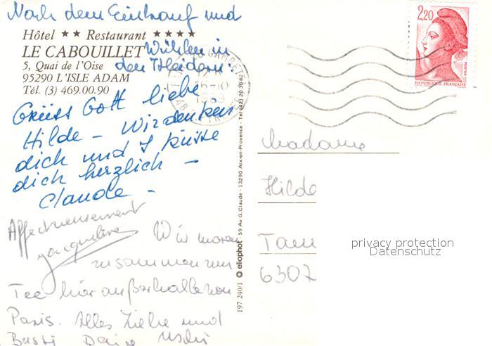 13592002 L Isle-Adam 95 Val-d Oise Le Cabouillet Hotel Restaurant postalisch gelaufen Erhaltung siehe scans [WerneD78] carte postale Wern Katcode 11170095395313