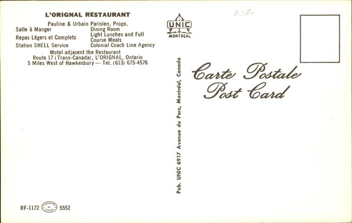 L Orignal Restaurant Motel postalisch nicht gelaufen Erhaltung siehe scans