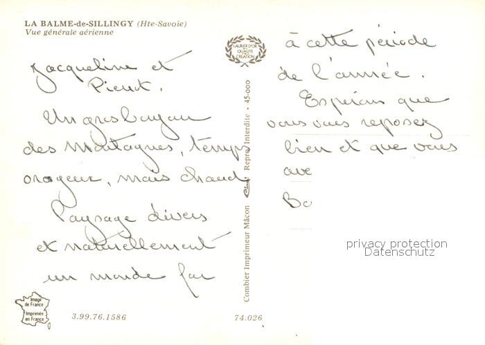 13593972 La Balme-de-Sillingy Vue generale aerienne postalisch nicht gelaufen Erhaltung siehe scans [WerneD78] Wern Katcode 11170074174026
