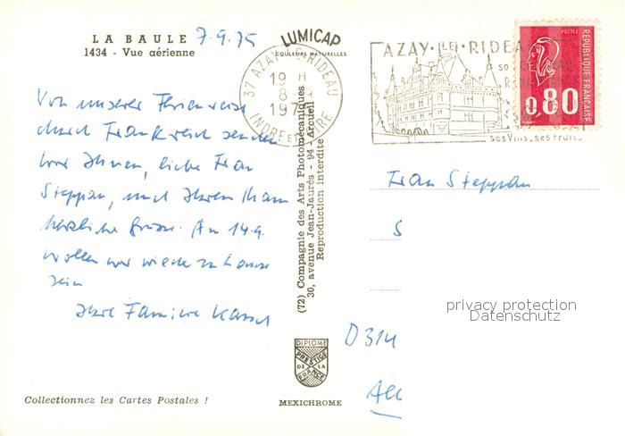13742508 La Baule sur Mer 44 Vue aerienne postalisch gelaufen Erhaltung siehe scans [FriedD77] carte postale Frie Katcode 11170044344055