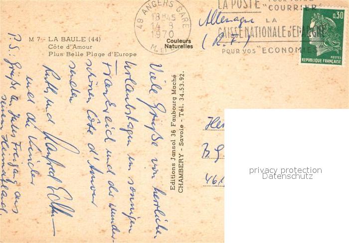 13060140 carte postale La Baule sur Mer Cote d’Amour Plus Belle Plage d’Europe Strand Yachthafen postalisch gelaufen Erhaltung siehe scans [FriedD77] KatCode: 11170044344055