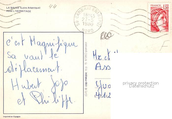13492549 carte postale La Baule sur Mer Hotel l Hermitage postalisch gelaufen Erhaltung siehe scans [WerneD78] KatCode: 11170044344055