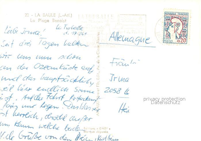 carte postale La Baule sur Mer La Plage Benoist postalisch gelaufen Erhaltung siehe scans [WerneD78]