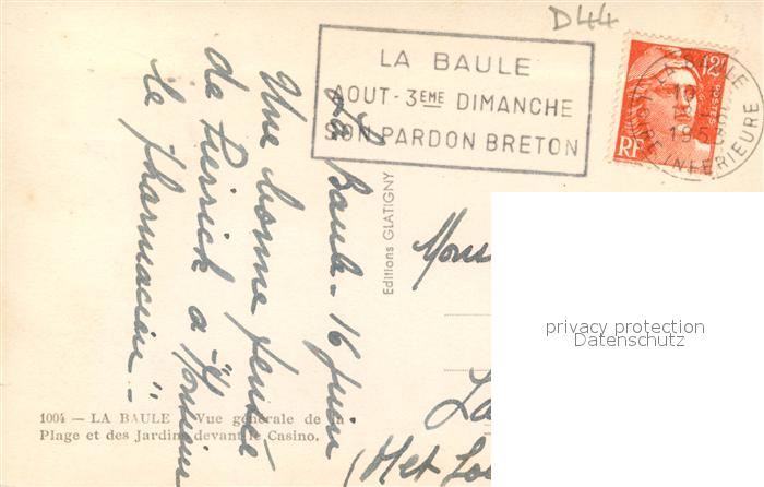 13593583 La Baule sur Mer Vue generale de la Plage et des Jardins devant le Casino postalisch gelaufen Erhaltung siehe scans [WerneD78] carte postale Wern Katcode 11170044344055
