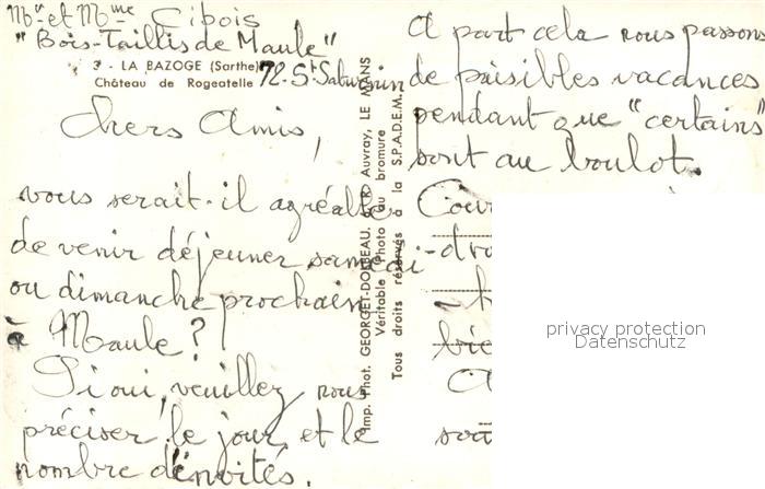13679624 La Bazoge Sarthe Chateau de Rogeatelle postalisch nicht gelaufen Erhaltung siehe scans [WerneD78] Wern Katcode 11170072372024